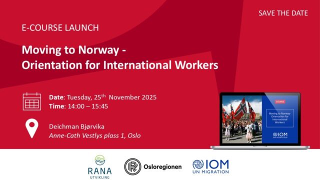 Rana Utvikling, Oslo Regional Alliance og IOM – FNs migrasjonsorganisasjon har gleden av å invitere til lanseringen av e-kurset «Moving to Norway – Orientation for International Workers».