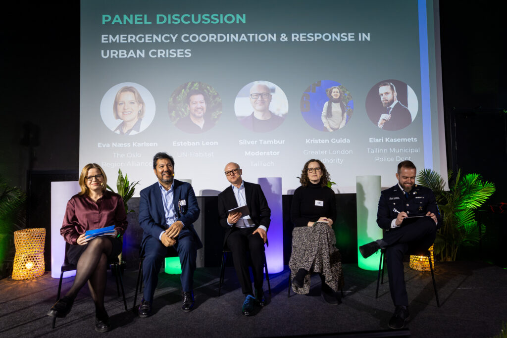 Osloregionen var invitert til å delta i en panelsamtale om byers og regioners koordinering og respons på katastrofer, angrep og nødsituasjoner. Fagsjef Eva Næss Karlsen representerte Osloregionen og prosjektet Geo4Water i panelet, hvor hun sammen med Kristin Guida fra Greater London Authority, Esteban León fra UN-Habitat og Elari Kasemets fra Tallinn delte erfaringer fra kriser og hvordan byer kan lære av hverandre. Diskusjonen satte søkelys på beredskap, kommunikasjon og koordinering på flere nivåer når krisen inntreffer.